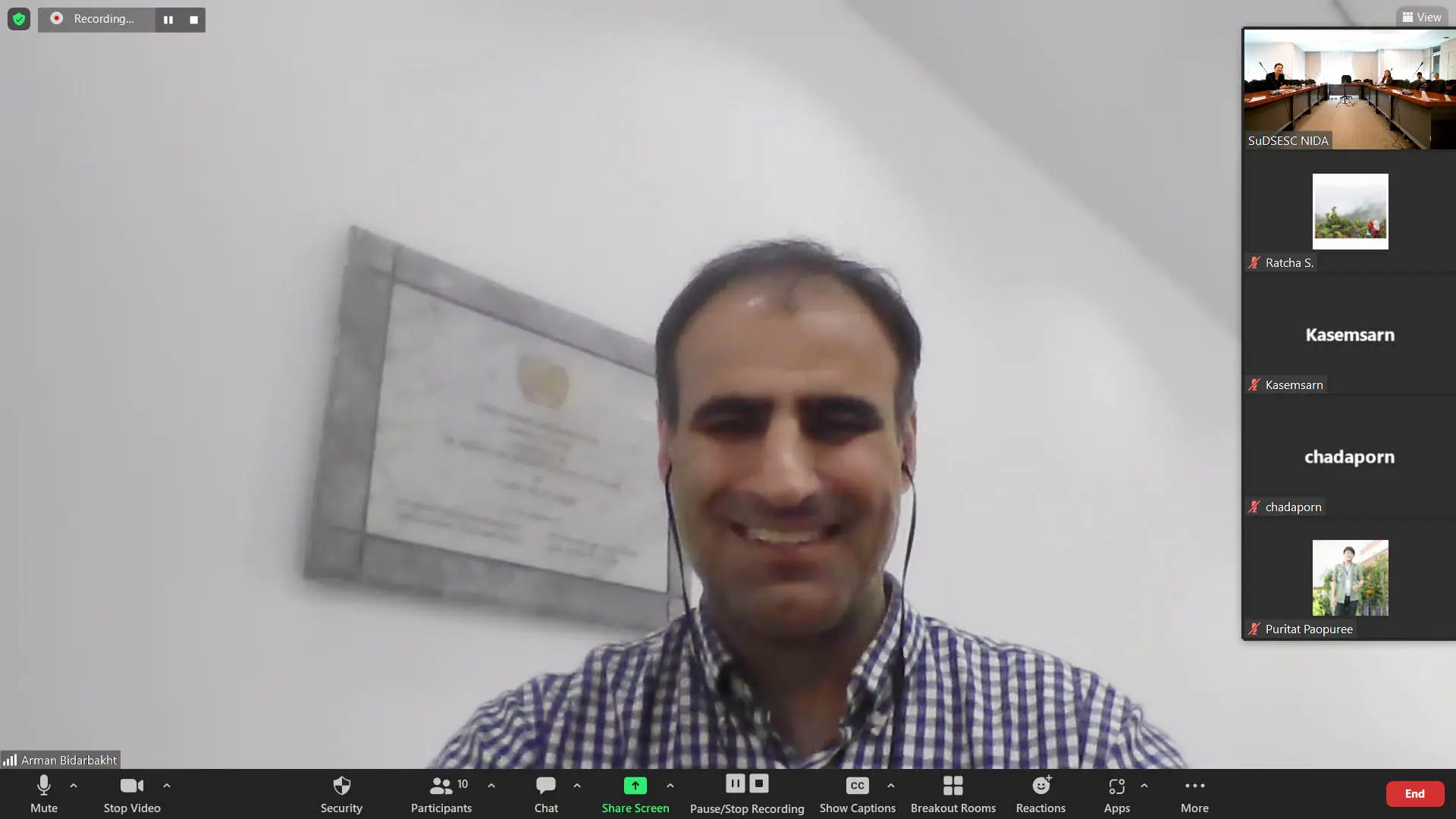 On August 31, 2023, Assistant Professor Dr. Aree Manosuthikit, Assistant to the President for International Affairs and Dr. Atchara Yomsin, Senior Researcher, Sustainable Development and Sufficiency Economy Studies Center, together with some other faculty members and administrative staff, attended a one-hour virtual meeting with Dr. Arman Bidarbakht Nia, Head of the Statistical Data Management Unit of the Statistics Division, United Nations Economic and Social Commission for Asia and the Pacific (ESCAP). NIDA would like to genuinely thank Dr. Arman for graciously accepting our invitation to join this meeting and for kindly sharing with us his perspective, practical advice and very helpful information (e.g., SDG Data Gateway) that would help improve the quality of our SDG work and report.