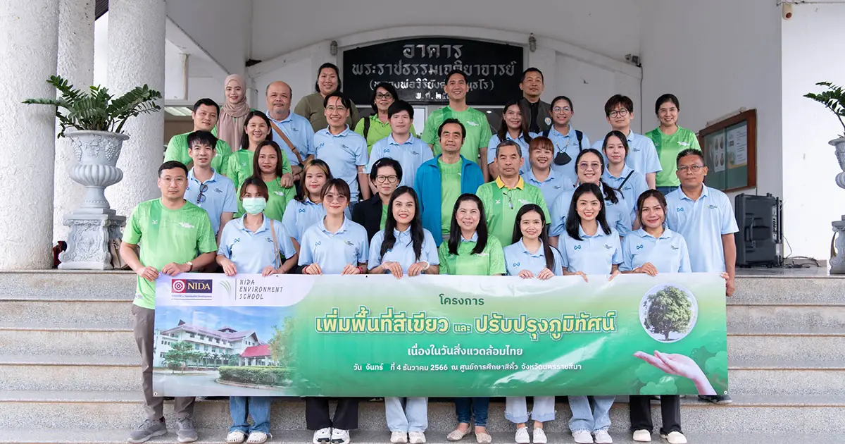 เมื่อวันจันทร์ที่ 4 ธันวาคม 2566 คณะบริหารการพัฒนาสิ่งแวดล้อม (นิด้า) จัดโครงการ “เพิ่มพื้นที่สีเขียว และปรับปรุงภูมิทัศน์” เนื่องในวันสิ่งแวดล้อมไทย ซึ่งตรงกับวันที่ 4 ธันวาคม ของทุกปี โดยการจัดกิจกรรมในวันนี้เกิดจากความร่วมมือร่วมใจกันในหลายภาคส่วน อาทิ คณาจารย์ นักศึกษา บุคลากร และชุมชนโดยรอบศูนย์การศึกษานิด้าสีคิ้ว จ.นครราชสีมา