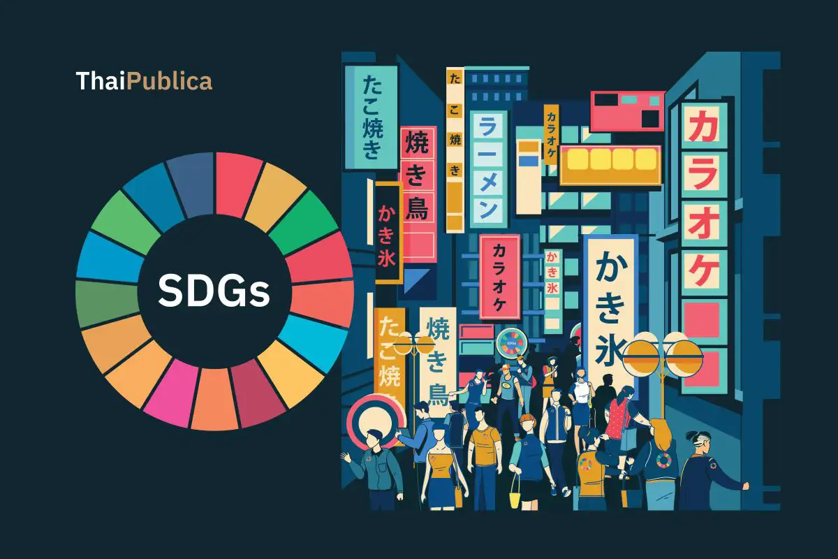 แน่นอนว่าในระหว่างที่เราท่องเที่ยว เราเห็นผู้คนทำงานเดินขวักไขว่ไปมากมายตามสถานีรถไฟในเมืองใหญ่ ๆ แต่สิ่งหนึ่งที่ผมสังเกตก็คือ พนักงานออฟฟิศจำนวนมากเหล่านั้น (อย่างที่เราทราบดีว่า พนักงานออฟฟิศของญี่ปุ่นจะนิยมใส่สูตไปทำงานในทุก ๆ วัน) มีการติด “เข็มหมุดปักเสื้อสูตที่มีลักษณะคล้าย ๆ กับโลโก้ของเป้าหมายการพัฒนาที่ยั่งยืนแห่งสหประชาชาติ (Sustainable Development Goals) ผมจึงมีความสงสัยตามมาว่า เพราะเหตุใดพนักงานออฟฟิศเหล่านั้นถึงนิยมติดเข็มหมุด SDG นี้กัน พอได้เริ่มหาข้อมูลเพิ่มเติมพบว่า การติดเข็มหมุด SDGs นี้เริ่มได้รับความนิยมมาตั้งแต่สัก 3-4 ปีที่แล้ว แต่ไม่ใช่แค่เพียงเข็มหมุดติดสูตเท่านั้น แต่โลโก้ SDGs ดูจะถูกนำเสนอในแหล่งต่าง ๆ มากมาย