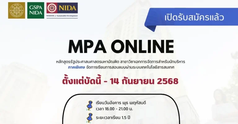 ป.โท รัฐประศาสนศาสตรมหาบัณฑิต จัดการเรียนการสอนแบบผ่านระบบเทคโนโลยีสารสนเทศ (ปริญญาโท MPA ONLINE)