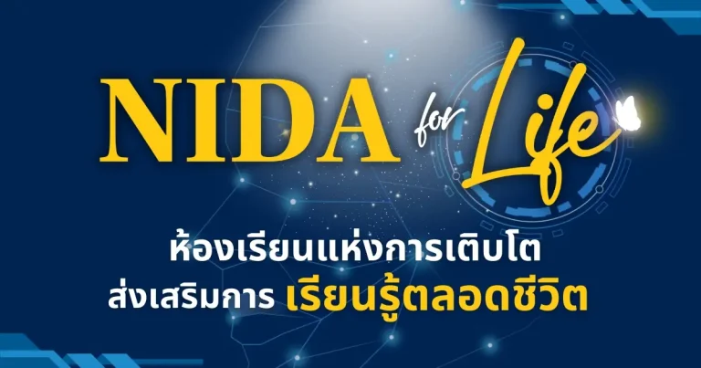 NIDA Digest ‘นิด้า’ เปิดตัว ‘NIDA for Life’ แพลตฟอร์มอบรมออนไลน์ ส่งเสริมการเรียนรู้ตลอดชีวิต1 October 20241 October 2024SDG4