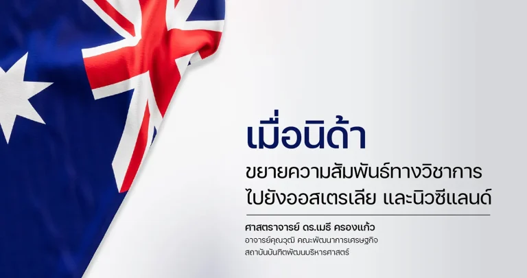 NIDA Digest คุยกับอาจารย์เมธี “เมื่อนิด้าขยายความสัมพันธ์ทางวิชาการไปยังออสเตรเลียและนิวซีแลนด์”5 May 20238 June 2025SDG17SDG4