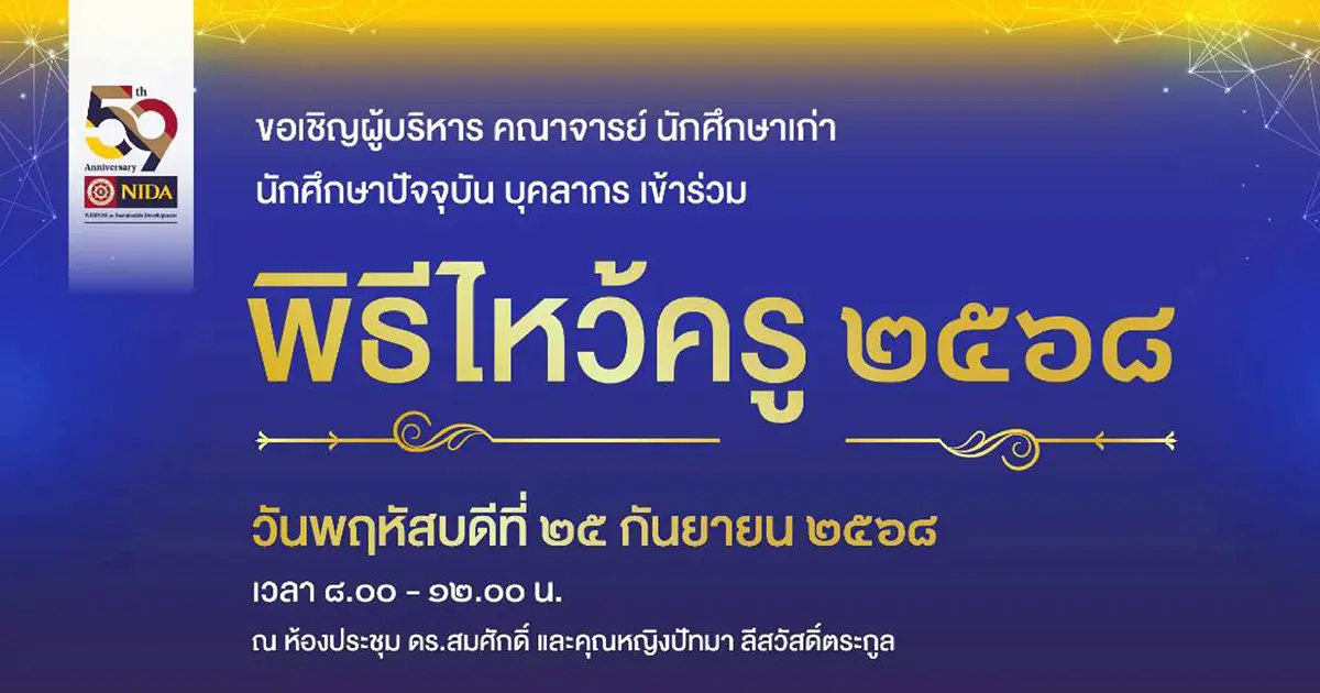 นิด้า” ขอเชิญชวนคณาจารย์ นักศึกษา ศิษย์เก่าและบุคลากรทุกท่าน ร่วมเข้าร่วม “พิธีไหว้ครู 2568”